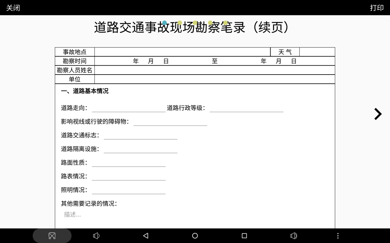 交通事故現(xiàn)場(chǎng)繪圖解決了交警在交通事故現(xiàn)場(chǎng)勘察時(shí)速度慢、效率低、信息易遺漏等問(wèn)題,系統(tǒng)以簡(jiǎn)捷、輕便、易操作、一次性成比例圖等近乎完善的人性化設(shè)計(jì),同時(shí)作為當(dāng)?shù)亟煌ㄊ鹿市畔⑾到y(tǒng)的一個(gè)組成部分,為案卷的制作、整理、統(tǒng)計(jì)等提供事故現(xiàn)場(chǎng)信息。