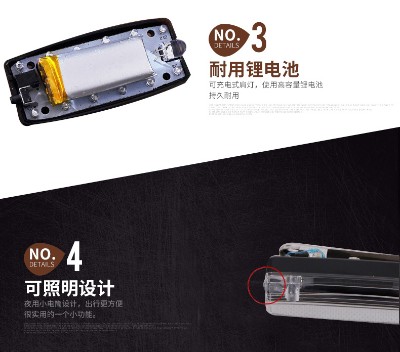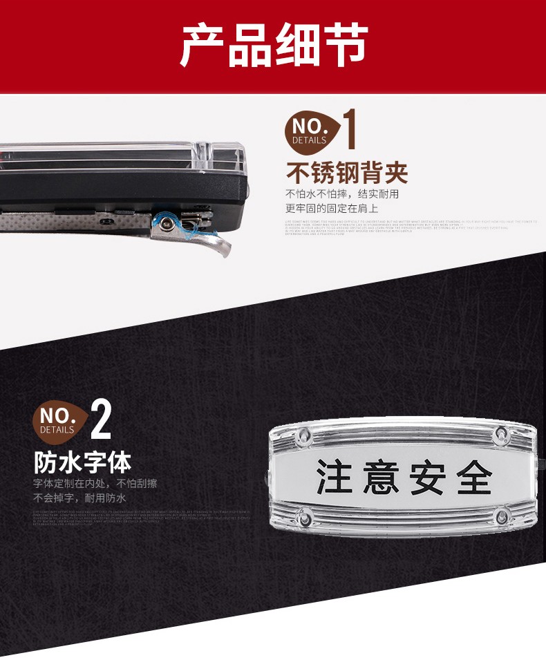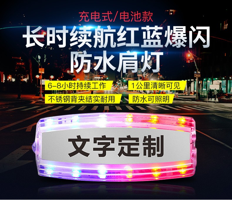 安全防護(hù)肩燈主要用于公路交通工作人員,道路環(huán)衛(wèi)工人以及行人夜間道路安全警示,通過多模式,高警示,自主LED發(fā)光提醒過往司機(jī)亮燈處有人員存在,小心駕駛,從而達(dá)到保護(hù)佩戴者的功能。曾經(jīng)有新聞報道,小小的肩燈給一個在火災(zāi)中的生命帶來生存的希望,如果沒有這個肩燈,那消防救助員就不容易發(fā)現(xiàn)他。相信小小的肩燈會實(shí)現(xiàn)越來越多,越來越大的功能,可以說肩燈在某些環(huán)境是保命的法寶。公司所生產(chǎn)的充電肩燈和電池肩燈都是通過LED自主多模式發(fā)光,實(shí)現(xiàn)爆閃,流水閃,頻閃等高警示閃光,起到非常好的警示效果。