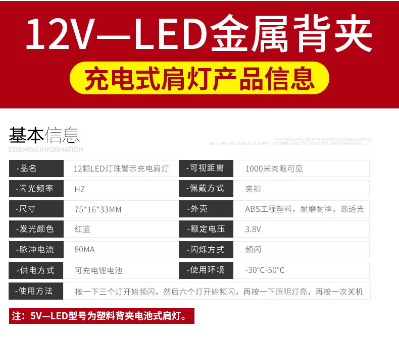 充電肩燈參數(shù):